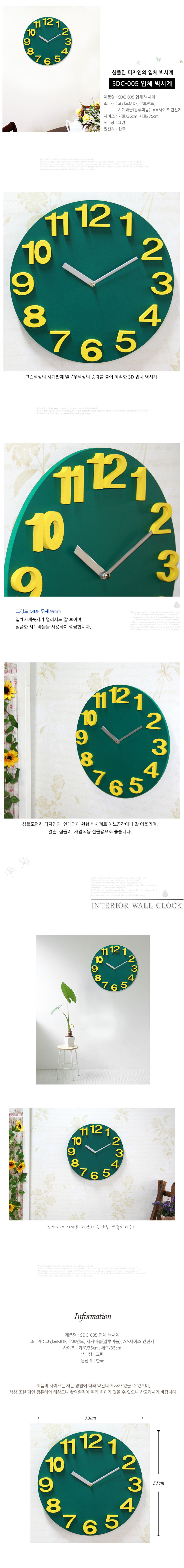 INFO Material : high-solidity MDF, Movement Size : 35cm x 35cm x 0.9cm Contents : Clock, AA Battery 1ea Origin : Korea