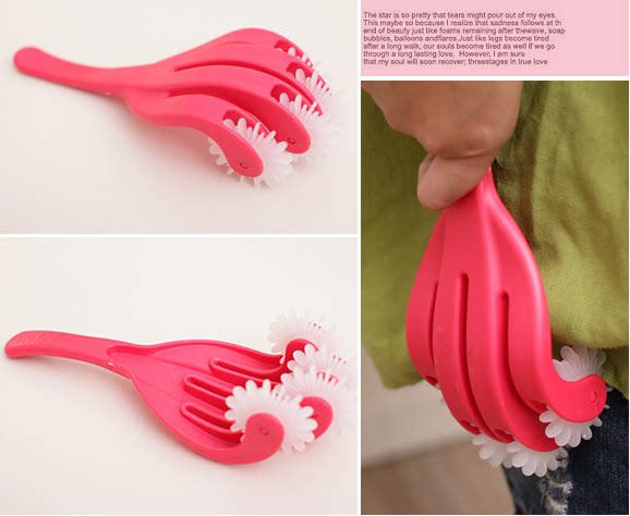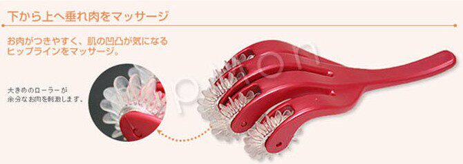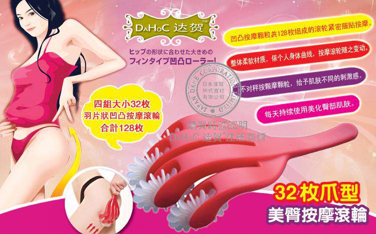产品特点: 1、整体爪子造形,符合臀部曲线,随著每个部位的弧度适当调整按摩。 2、凹凸颗粒设计,搭配每个轮子由32片组成的按摩滚轮,将每个部位紧密服贴按摩。 3、凹凸按摩颗粒,共128枚组成的滚轮,紧密服贴按摩。 4、整体柔软材质,依个人身体曲线,按摩滚轮随之变动。 5、不对秤按颗摩颗粒,给予肌肤不同的刺激感。 6、每天持续使用美化臀部肌肤。