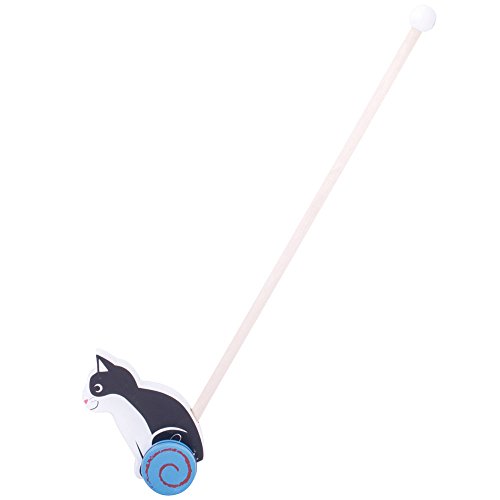 Balance and movement are at the forefront of this fun cat push along toy, as your little one pushes it across the floor holding the easy to grip handle. Pushing and pulling the cat around your little one can use this colorful wooden push along indoors and out. Features a sturdy wooden pole with an easy to grip handle. The Big jigs Toys push along are a great way to encourage mobility, balance skills and an understanding of cause and effect. Other animal themed push along are available. Made from high quality, responsibly sourced materials. Conforms to ASTM and CPSIA safety standards. Age 12+ months. Length: 21.65".Feature