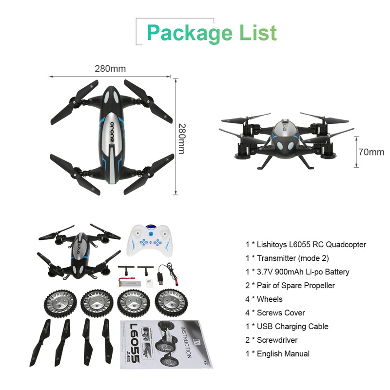 This original Lishitoys L6055 quadcopter is exactly what you need. What's more, it can not only perform 360 degree flips function, but also can run on the ground like toy car. How fantastic is it!