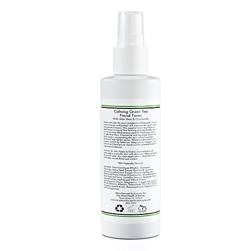 An often overlooked yet essential element in every daily skin care regimen is that of the toner. Your skin needs to be cleansed but it should also be properly toned and evened. That is where our Calming Green Team Facial Toner comes into play. Our superior toner is overflowing with natural ingredients 98 naturally derived in fact! and should be a vital member of your daily skin care routine. Whether you have dry - normal - oily or combination skin this toner will address your needs and prepare your skin for a refreshed outcome. A glowing complexion requires certain elements to work in tandem such as our cucumber extract for tightening pores and our proteins utilized to improve your skin lipid content - all of which results in increased firmness and an evenly moisturized palette.The natural polysaccharide ingredient has a superior moisturizing effectiveness that rivals its counterparts. This fresh combination of naturals gives balance and temperance to the skin of both men and women - spanning various skin types and conditions. Save your skin by allowing it to behave as intended with toned excellence. Although we say it every time it bears repeating: Your skin is as unique as you are and for that reason all purchases are backed by our 100% Satisfaction Money-Back Guarantee which has no expiration date or conditions. We tend to feel that your skin glows all the more when we provide a guarantee that is as unmatched as our products. You have a skin care partner in Key West Health and Beauty - always have always will.Feature