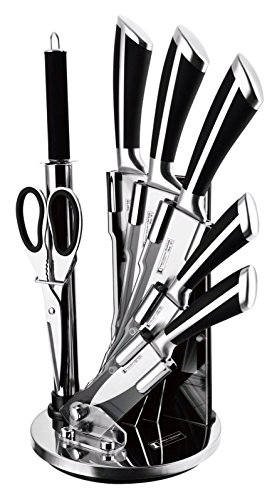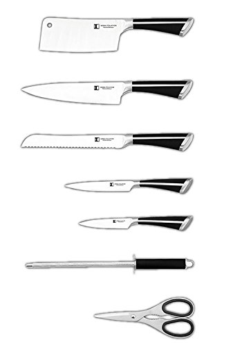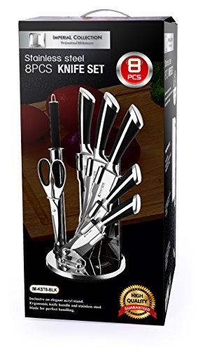 Imperial Collection IM-KST8 BLK 8 Piece Knife Set with Knife Block, Extremely Sharp Non Stick Coating Knives with a Great Grip, Black