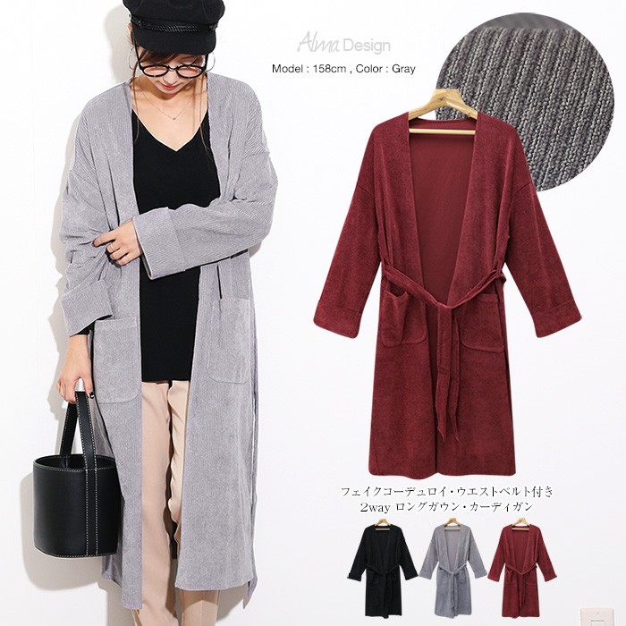 リブのような表面の質感が季節感たっぷりなフェイク・コーデュロイ素材のロングガウン♪