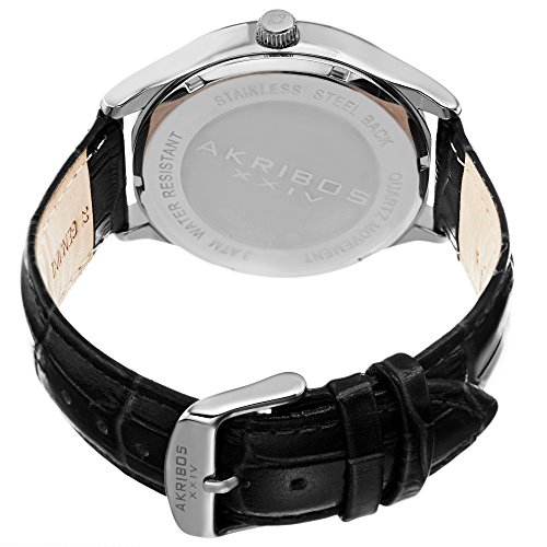 -. Title : Akribos XXIV Men's Quartz Silver-Tone Case with Black Sunray Dial and Silver-Tone Hands on Black Alligator Embossed Genuine Leather Strap Watch AK914SSB