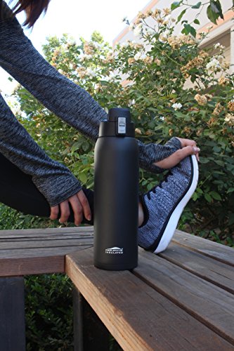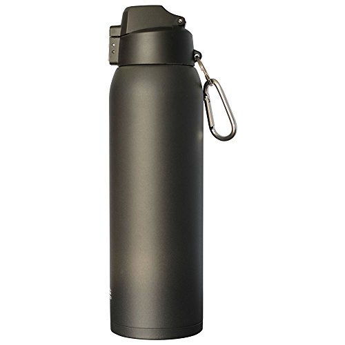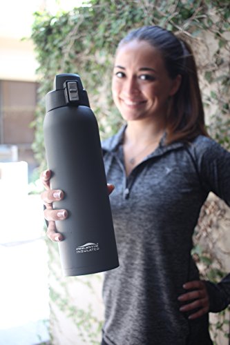 The Aquatix Sporty 32 oz Double Wall Insulated Stainless Steel Water Bottle is perfect for use at the gym, at the office, around your house and anywhere you need to take your beverage of choice with you. Made from durable and sturdy PREMIUM QUALITY, Top Chef 18/8 FOOD GRADE STAINLESS STEEL, this Aquatix Sporty 32 ounce water bottle is a great eco friendly sports bottle. The double wall insulated water bottle is PERFECT for carrying while walking, hiking, camping, use at the gym or just on the go- as it fits MOST car cup holders. No more spills and messes while driving! Ditch those plastic water bottles! GO HEALTHY with this BPA Free, FOOD GRADE stainless steel water bottle that holds a large capacity of liquids 32 fluid ounces and no longer worry about toxins and chemicals leaching into your beverage. Drink crisp, clean, healthy and refreshing drinks from Your Aquatix Water Bottle every time. Just Fill and Go! This sporty bottle features a flip top spout drinking mechanism allows the ease of staying hydrated even while on the go! The flip cap top provides single-handed drinking ability and is perfect for your busy life on the go! Stay hydrated and DRINK MORE WATER with this large capacity 32 ounce water bottle. Double vacuum insulated wall construction contributes to hot teas, soup, coffee or other blends being consistently hot for up to 6 hours. And, for cold water, smoothies, soft drinks, or anything you may need very cold, 24 hours of insulated confidence, guaranteed cold, period! The bottle will not "sweat", meaning it will not create condensation which may leave a "ring" of liquid on your expensive buried walnut side table. Easy to hand wash or clean, NO aftertaste after cleaning. COLD LIQUIDS or HOT LIQUIDS! This is a double wall insulated water bottle that is made of 18/8 food grade stainless steel water bottle! No other bottle has all the features of our Aquatix Sport Bottle!Feature