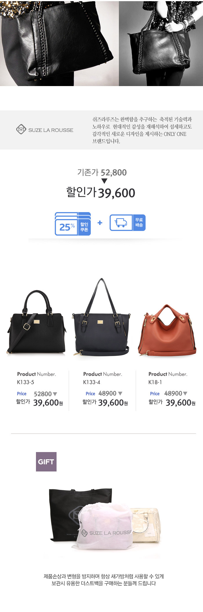 하나쯤 소장하셔도 100% 만족도를 느낄 수 있는 쉬즈라루즈 잇백입니다.