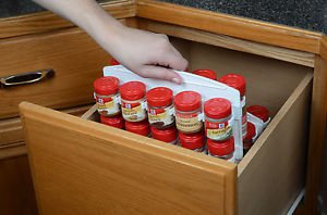 - Feature : Organize your spices in minutes! Instantly find what you need without rearranging. / Any layout variation up to 40 small or 20 large spices per organizer page. Fits all standard round sizes containers 1.5"- 2.0" in diameter. / Versatile SpiceStor organizer hangs from you cabinet shelf or can stand independently on a pantry shelf, in a deep drawer or on your countertop when needed. / Add additional SpiceStor units side-by-side for easy storage expansion. Store 100+ spices in a single small kitchen upper cabinet. A real space saver. / Easy installation, no tools required. Made from recycled/recyclable materials. High quality, unbreakable and MADE IN AMERICA. SpiceStor Organizer is an easy and cost effective way to efficiently store and quickly access your spices in your kitchen cabinets, on pantry shelves or in deep drawers.