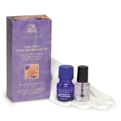 Studio : USA Publisher : USA Binding : Misc. Product Description Cuccio Bella Mani Maintenance Kit was designed to allow you to maintain beautiful nails at home. Nurture yourself at home 3 times a week with Grapeseed Hand Anti Oxidant Oil and once or twice a week with Cuccio?s Forte Strengthener over natural nails or over polish. Keep your hands and nails looking and feeling like you just walked out of a spa. This kit contains: 1/8 oz. Cuccio?s Fort? Strengthener 5 ml. Grapeseed Hand Anti Oxidant Oil Cotton Gloves 0