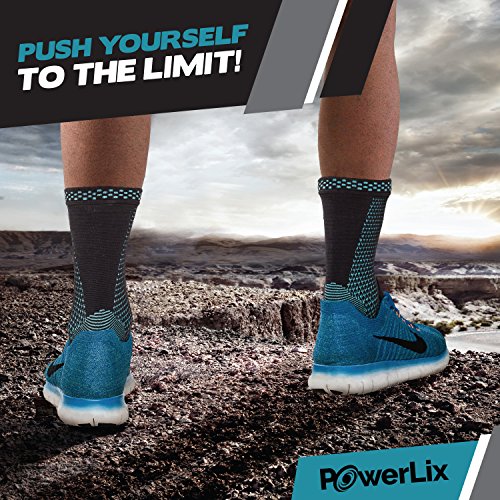 -. Feature : PHENOMENAL PROTECTION: PowerLix ankle braces apply even pressure across your ankle joint, which provides ultimate pain relief from a variety of ailments including plantar fasciitis, arthritis, sprains, swelling, tendonitis, muscle fatigue, and other ankle pain. With our sleeves you'll be able to tackle any activity life throws your way, while ensuring you're a step ahead in injury prevention! PLEASE TAKE A LOOK ON OUR SIZING CHART AND FIND THE BEST SIZE FOR YOU! / PUSH YOURSELF TO THE LIMIT!: Our ankle supports are the perfect fit for any activity requiring ankle movement, including Baseball, Basketball, Crossfit, Soccer Golf, Hiking, Running, Tennis, Volleyball and more! You'll be able to enjoy exceptional ankle support while still maintaining your peak performance and full range of leg motion! / PREMIUM QUALITY: Our ankle sleeves are manufactured to provide superior support, comfort, and relief without compromising your mobility. Tight, form fitting, and breathable compression fabric maintains joint stability regardless of activity, helps improve blood circulation and eases pain from heel spurs, Achilles tendon heel etc., while avoiding the itchiness common to neoprene supports. Quick at absorbing sweat and keeps your feet dry and odor free, gives you hours of continuous use! / BREATHTAKING DESIGN & PERFECT FIT : Whether you've got meaty ankles, or are a little bit slender, we've got a fit for you with the Special knitted technical design that matches different joints. The beautiful design of the sleeves in blue & black makes you look fashionable anywhere anytime. The special fabric gives you a smooth and soft feel so you can wear them all day long! / 100% MONEY BACK GUARANTEE- We truly want you to be happy with your new ankle braces and our professional customer service will do whatever it takes to ensure your satisfaction. If you are not fully happy with the PowerLix ankle braces, we are offering 6 month guarantee, no questions asked.
