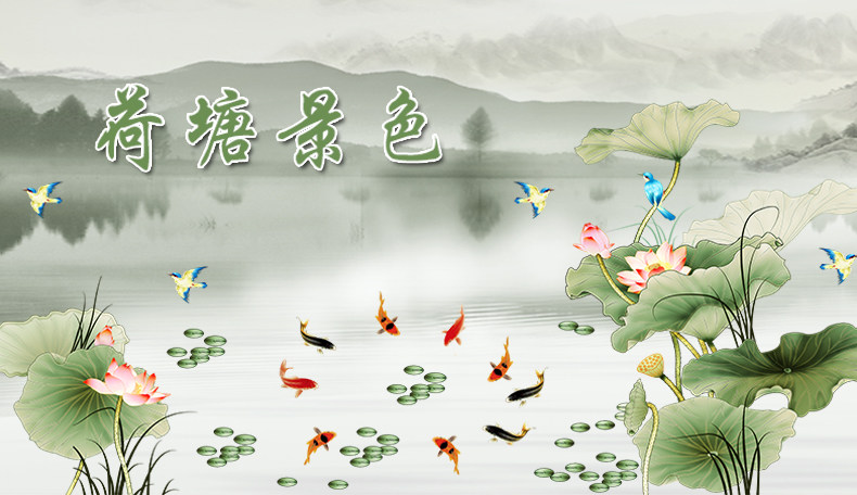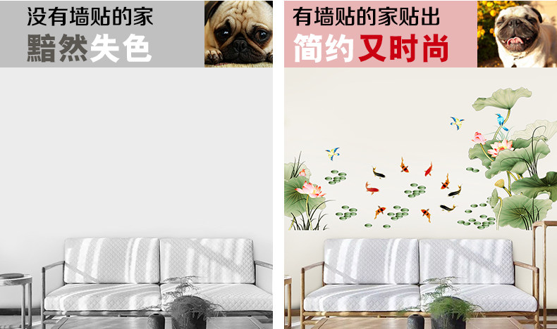 荷花墙纸自粘墙贴画客厅卧室房间床头温馨贴画墙上装饰品墙壁贴纸