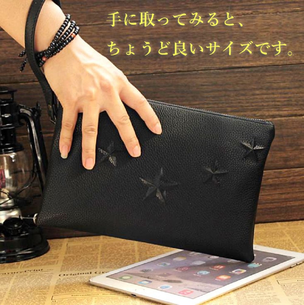 (Amerton) Amerton Clutch Bag Star Star Leather Leather Mens Women's Gender Handbag Black Black Camouflage