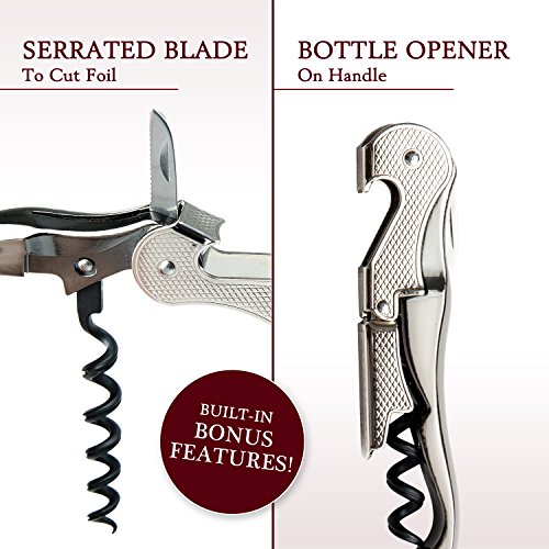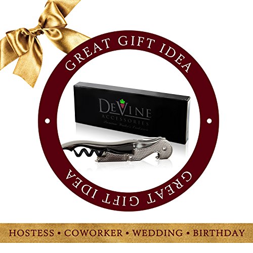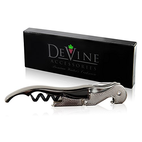 -. Title : Premium Waiter’s Corkscrew – Professional Grade Handheld Wine and Bottle Opener with Metalic Handle, Double Hinged Lever and Foil Cutter - by DeVine Accessories