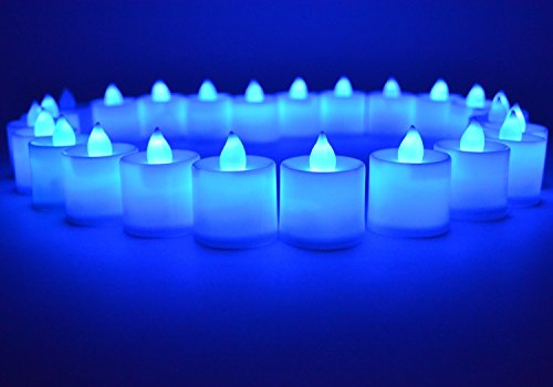 SAMYO SET OF 24 BATTERY FLAMELESS & SMOKELESS LED TEALIGHT CANDLES - BLUE CANDLELIGHT