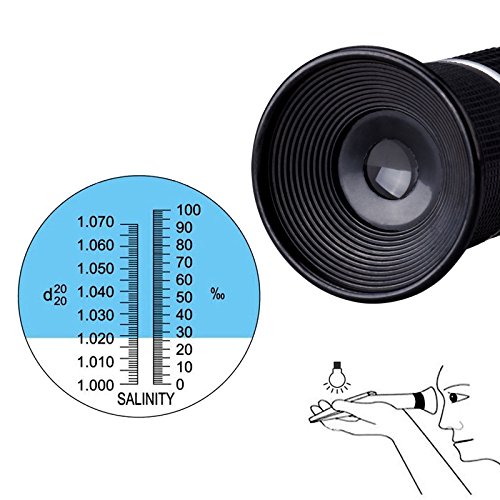 Salinity Refractometer , Aquarium and Sea Water Hydrometer ,Dual Scale 0-100 ppt of Salinity and 1.000 to 1.070 Specific Gravity (0-10%) for Sea Water Aquarium Tank, Marine Industry