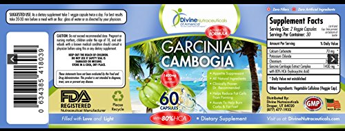 -. Binding : Health and Beauty -. Brand : Divine Nutraceuticals of America (DNA) -. Color : Tan -. EAN : 0634385418077 -. Feature : DOUBLE FAT BURNING ACTION: Our advanced Garcinia Cambogia supplement tackles stubborn fat, targeting two essential weight loss areas for premium weight management support. Resist tempting sweets as you slim down. / COMPLETE APPETITE CONTROL: Our highly effective Garcinia Cambogia appetite suppressant helps you feel happy all day long by boosting mood-enhancing serotonin in the brain. Stop stress-triggered cravings from padding your waistline. / REDUCED FAT PRODUCTION: Store less fat for more fuel. Our Dr. Recommended healthy weight loss formula works to stimulate the metabolism, replacing carbohydrates with sustainable energy for more efficient calorie burning. / EXCEPTIONAL COLON SUPPORT: Our advanced colon detox formula gently cleanses, flushing taxing toxins and impurities from the gastrointestinal tract. Refresh your system, guard against infection, and maintain an optimal weight - all while speeding up digestion. / SOOTHING MILD LAXATIVE: Our colon cleansing supplement naturally pushes built-up waste through the intestinal tract, relieving constipating while restoring healthy bowel movements with swift cleansing action. -. IsAdultProduct : 0 -. Label : VOX -. LegalDisclaimer : Do Not exceed recommended dosage. Pregnant or nursing women, children under 18 and individuals with known medical conditions should consult their physician before taking. Keep out of reach of children. Do not use if safety seal is damaged or missing. Store in a cool, dry place. -. Manufacturer : VOX -. MPN : Combo Pack -. PackageQuantity : 1 -. PartNumber : Combo Pack -. ProductGroup : Health and Beauty -. ProductTypeName : HEALTH_PERSONAL_CARE -. Publisher : VOX -. Studio : VOX -. Title : Garcinia Cambogia 80% HCA Extract + Colon Cleanse Toxin Detox Fat Carb Diet Weight Management Formula 1400mg Freeze Compulsive Cravings and Burn Stubborn Fat Satisfaction Guaranteed or Your Money Back -. UPC : 634385418077