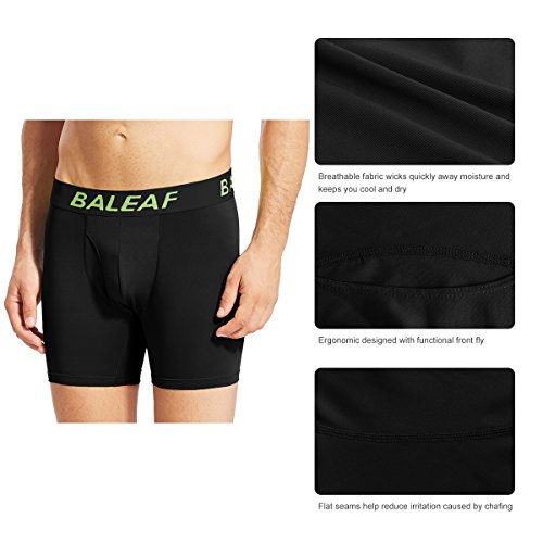 Title : Baleaf Men's 6" Boxer Brief Sports Active Underwear with Fly Black Size L