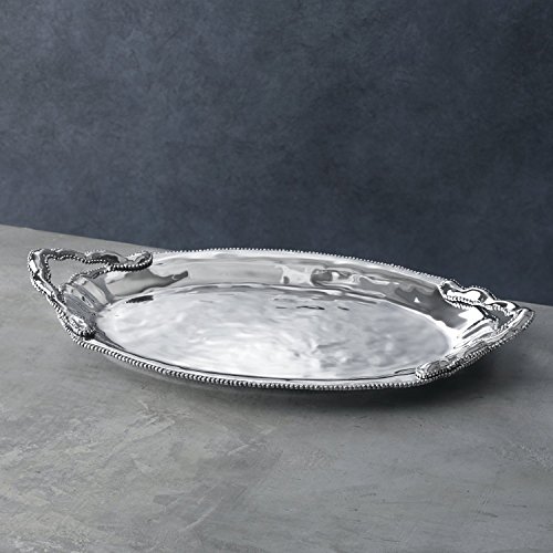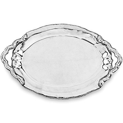 Studio : Beatriz Ball Publisher : Beatriz Ball Binding : Kitchen Product Description The Beatriz Ball PEARL Denisse Oval Tray with Handles with its delicately curved handles, rim of sparkling pearls, and gleaming surface makes a stunning presentation. With sophisticated styling, the oval tray is at home on the bar, coffee table, or ottoman. Pair with any Beatriz Ball PEARL Denisse items for a fabulous set. Handmade of an FDA safe, easy-care, oven and freezer friendly aluminum alloy. Tarnish free. 0