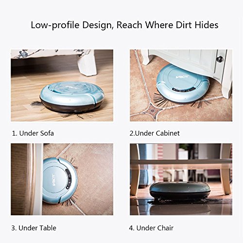 -. Feature : ★ CLEANS AUTOMATICALLY: The entry level VBOT T270 cleans your tiles, hard woods, marbles with just one click. It automatically cleans along walls, spin in circles to clean dirty places, or slides under sofa and beds to clean the places you can't reach. / ★ Dry Mopping: Patented 3-layer static dust paper for drying mopping functions helps it to remove fine partilces,dirt,dust and hair easily. / ★ INTELLIGENT: Featuring adjustable anti-falling sensors, fall from stairs when it is doing it's job. The adjustable anti-falling sensor works better if you have dark-colored floor where other robot vacuums will not go and clean. / ★ HUMANIZED DESIGN: Patented tool-free side brush installation, easy to maintain; water washable and easy-to-remove dust trap and hepa filter. / ★ Manual Charging, works for 60 minutes at a single charge. Ideal for pet owners,hard floors,thin carpets. 1 Year Limited Manufacturer's warranty.