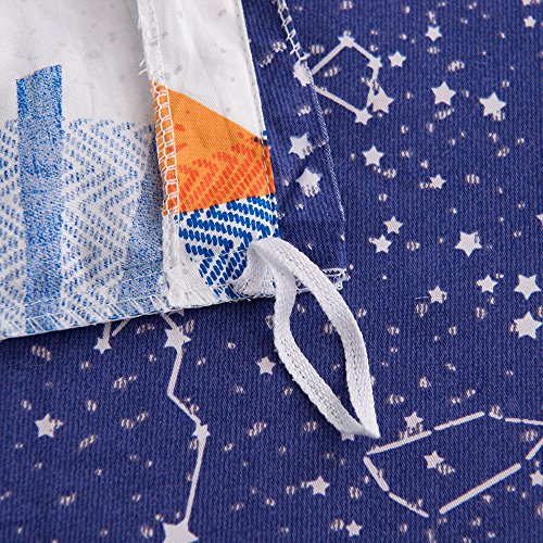 BuLuTu Space Rocket Print Cotton Boys Bedding Duvet Cover Sets Twin White Blue Universe Adventure Theme Star Girls Bedding Sets with 2 Pillowcases For Kids Zipper Closure Wholesale