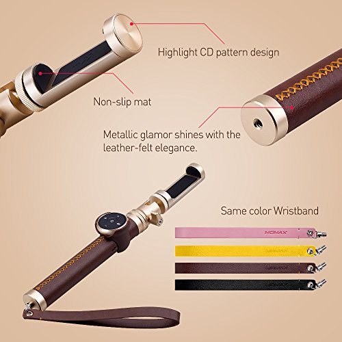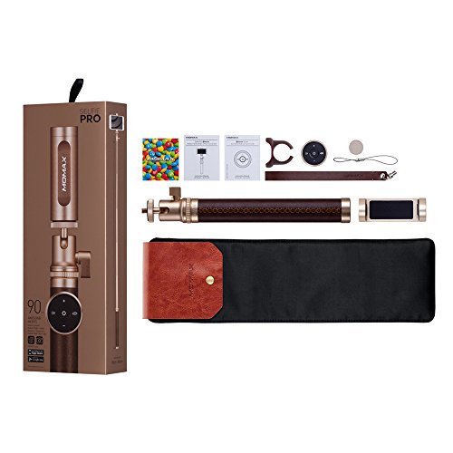 MOMAX Wireless Selfie Stick, Luxe Elite Bluetooth Romote Shutter Selfie Pod (35" Champagne)