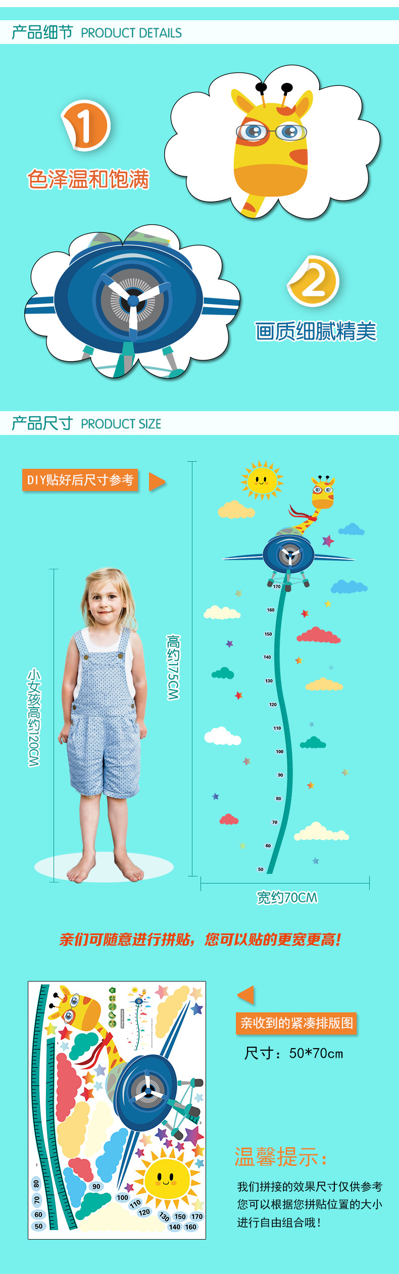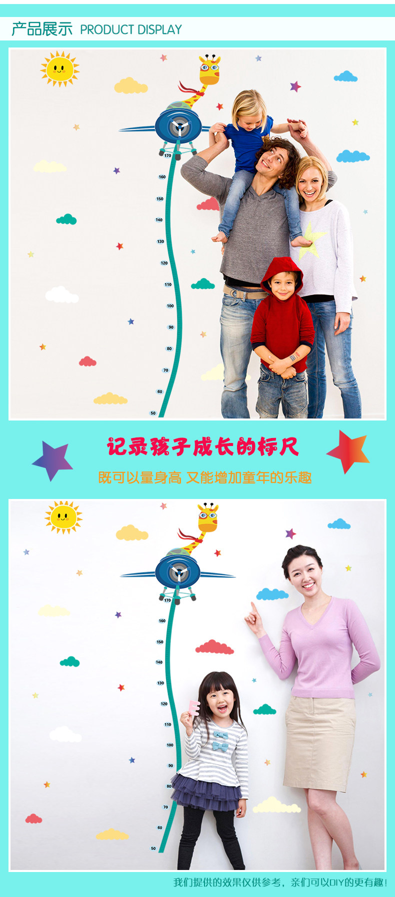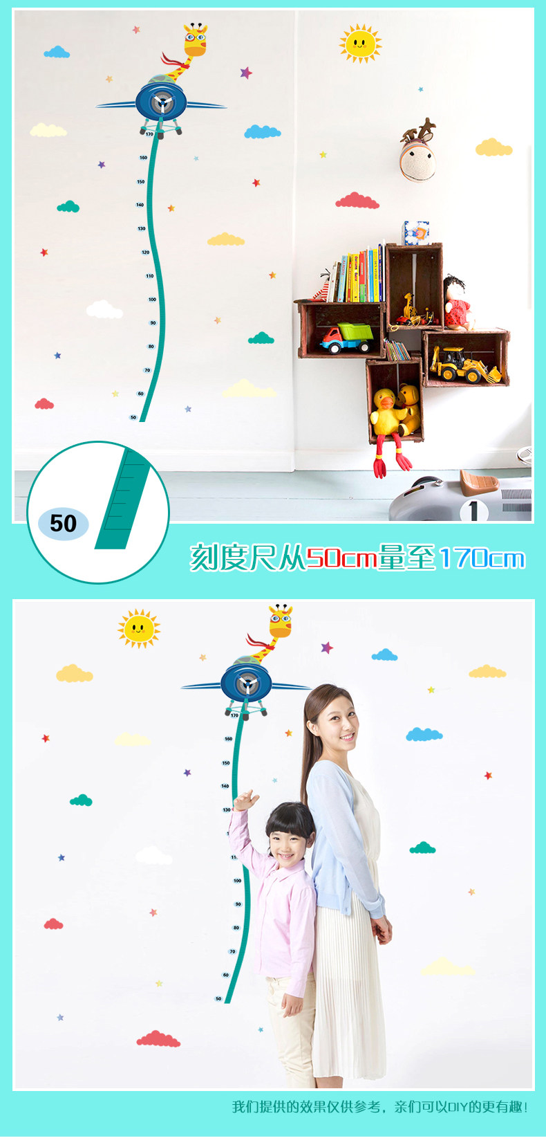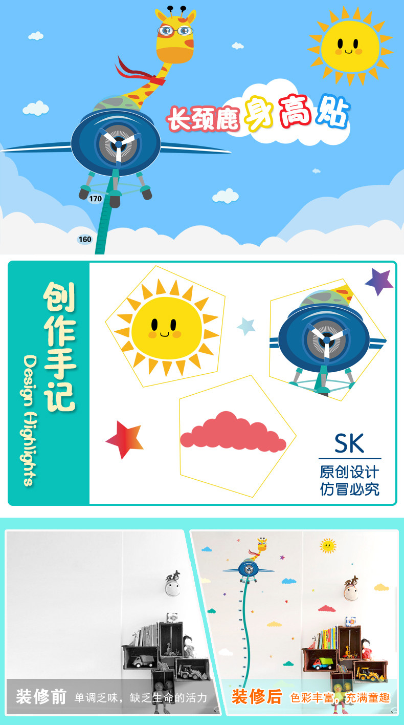 儿童房宝宝身高贴纸卧室装饰贴画温馨卡通自粘量身高尺墙贴可移除