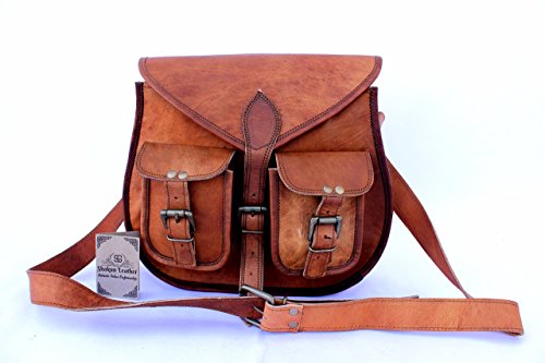 Shakun Leather Handmade Women Vintage Genuine Cross Body Bag Double Pocket Front Satchel, 10 x 13 Inch