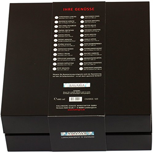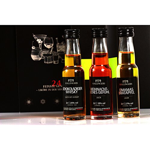-. Feature : 24 feinste Liköre aus unsere Genuss-Manufaktur, abgefüllt in Minigläser zu 20 ml, verpackt in 24 nummerierten Schächtelchen / Die 24 unterschiedlichen Likör-Variationen sind mit Whisky, Grappy, Obstbränden, Rum, oder Sahne verfeinert / Als Genusskalender für Liebhaber feiner Liköre. Welcher Likör sich in welchem Schächtelchen verbirgt ist von außen nicht zu erkennen - für eine perfekte Überraschung! / Die Verpackungs-Designs von Hallingers sind international ausgezeichnet (u.a. Red Dot Design Award 2013, German Design Award Special Mention 2014) / Ein Hochgenuss für Gourmets zum Verschenken oder zum selbst Genießen- Hinweis: Enthält: Milch