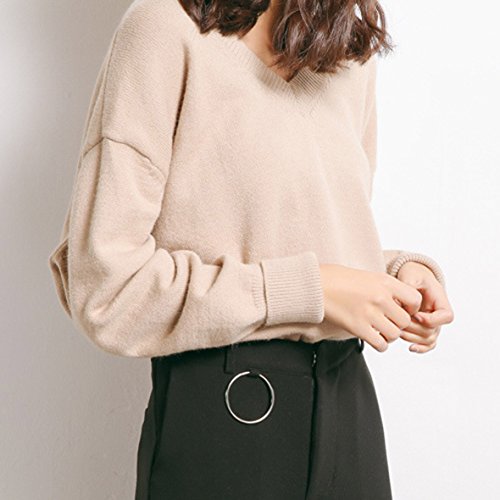 -. Feature : ◆素材:ビスコース繊維%、ポリエステル、ナイロン18 % / ◆サイズ:フリー 肩幅:38cm バスト:130cm 着丈:59cm 袖丈:53cm 体のラインを拾わない、ゆとりのあるシルエット。 / ◆カラー:写真の通り、学校・オフィス・私服・フォーマルなど様々なシーンで大活躍! / ◆シンプルながら、裾、袖のリブを長めにしてトレンド感をアップ。Vネックなので、いろいろなアイテムとレイヤードが楽しめる。可愛いデザイン:Vネック、プルオーバー、無地、の編み物のセーター。 / ◆春・秋に最適な素材感、伸縮性も良いので着心地抜群で、秋冬にはインナーとして使うのもオススメ。