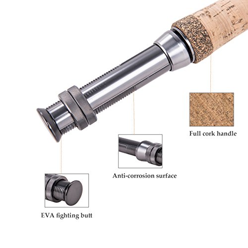 ✔ FULL CORK HANDLE with EVA fighting butt and anti-corrosion surface gives a comfortable grip, lets you feel the slightest vibrations, helps casting accuracy, balance, and reduces fatigue