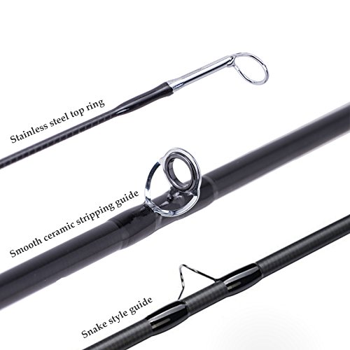 ✔ STAINLESS STEEL SNAKE STYLE GUIDES for better sensitivity that transmits information from the line to the blank. K-foot ceramic inserts in the stripping guide positions provide smooth power. Stainless steel guides give you longer wear and are saltwater safe