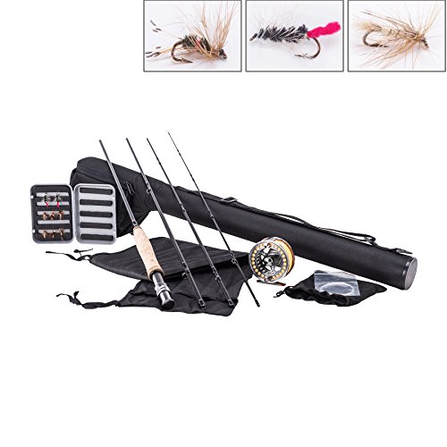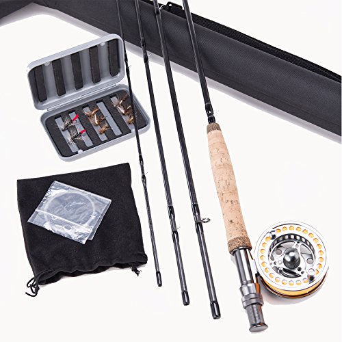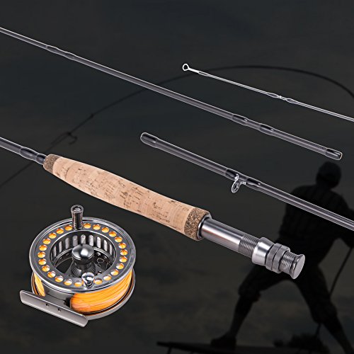 ✔ MODERATE ACTION ROD, fly fishing rod made from carbon fiber, durable and extra light weight, more versatile and easier to control, good for river and open water fishing activities; 9 feet 4 pieces extendable fishing pole with 5/6 CNC- machined aluminum alloy reel and drag