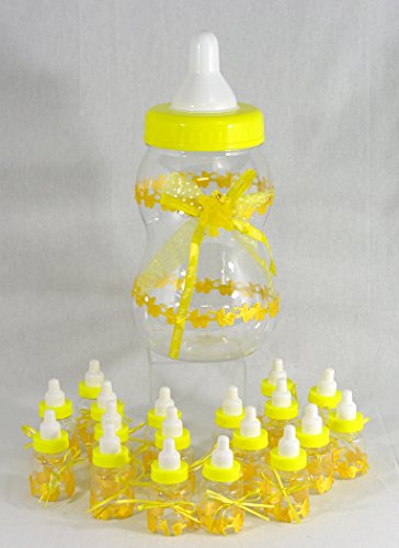 LARGE BABY BOTTLE BANK WITH 18 MINI BOTTLE PARTY FAVORS - YELLOW
