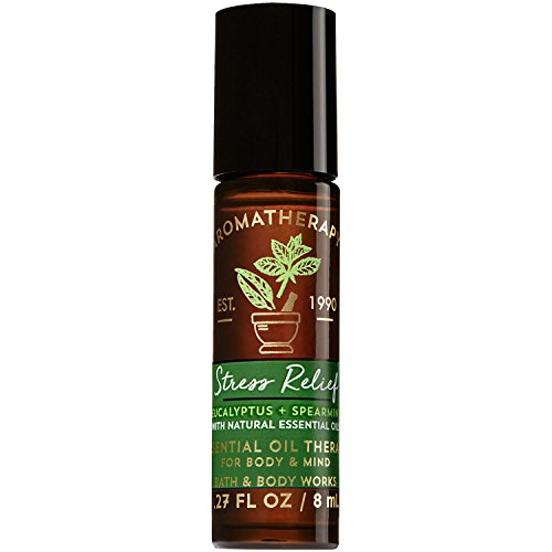 -. Binding : Misc. -. Brand : Bath & Body Works -. EAN : 0667544803940 -. Feature : Eucalyptus Essential Oil : clears the mind. / Spearmint Essential Oil : soothes & uplifts / Soothe body, mind & mood with our Essential Oil Therapy Rollerball infused with natural essential oils. Breathe deeply for best results. / USAGE: Roll on body, especially wrists, whenever you need to relax and unwind. -. IsAdultProduct : 0 -. Label : Bath and Body Works -. Manufacturer : Bath and Body Works -. MPN : none -. PartNumber : none -. ProductGroup : Beauty -. ProductTypeName : BEAUTY -. Publisher : Bath and Body Works -. Studio : Bath and Body Works -. Title : Bath and Body Works Aromatherapy Stress Relief - Eucalyptus & Spearmint Essential Oil Rollerball 0.27 Fl. Oz. -. UPC : 667544803940