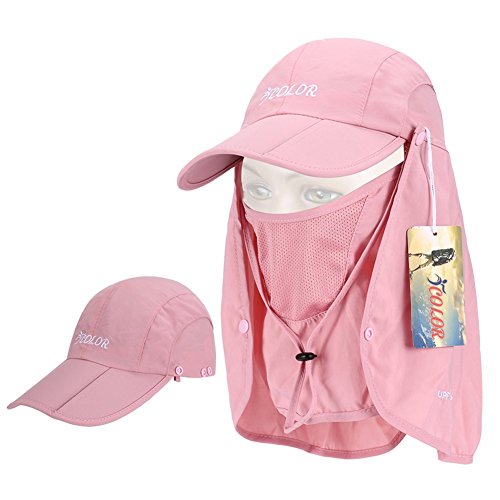 -. Feature : LIGHTWEIGHT & QUICK TO DRY: iColor 360° protection Outdoor Sun Flap Hats , Sun Cap , Lightweight, breathable material for all-day wear,quick drying fabric polyester is great for all types of outdoor activities, free size fits most with adjustable buckle. 360 degree design protection, sunscreen, UV damage, anti-mosquito High quality. / UPF 50+ PROTECTION: iColor Flap Hats ,Sun Cap UPF 50+ sun protection to keep delicate skin on the neck ears and face safe from harmful rays,The whole surrounded by a large shawl , free removal, sunscreen and breathable. in addition to a removable neck flap and breathable face protector,It protects skin from the elements and the mask can protect face from dust. / WINDPFOOG WATERPROOF FABRIC: Mesh,absorb sweat, breathable, UV resistance.Dark cap eyebrow, absorb strongly scatter light, eye protection ,The back of the hat for the elastic fast buckle, Windproof design with adjustable chin strap ensures the hat stays put even in windy conditions . / FEATURES: iColor Flap Hats ,Sun Cap Waterproof, windproof, UV, breathable, quick-drying, ultra-light;Suitable for the crowd: fishing enthusiasts, sailors, climbers, camping activities,exploration personnel . ICOLOR sun cap has many colors to choose:Black/Light Pink/ Dark Pink/Sky Blue/Light Grey/Dark Grey/Khaki/Army Green.There are so many ways to wear this cap depending on your protection needs and activity. / FOLDABLE: Our ICOLOR Flap Hats Sun Cap is Portable to fit in small bags or purses, can easily be folded into itself and packs well .Portable ICOLOR sun cap in your bag.