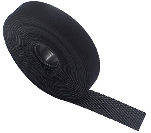Hook & Loop Cable Ties Fastener (3/4 Inch x 5 Yards x 2 Rolls) - Reusable Black Self-Fastening Power Cord Wire Management - Resuable Fastening Tape Strap - Double Side Hook and Loop, One Wrap Strap