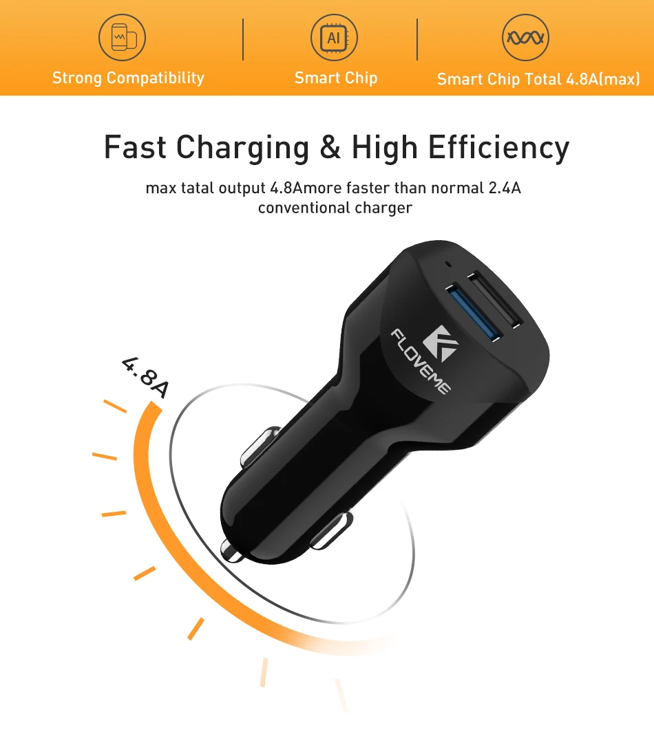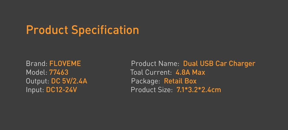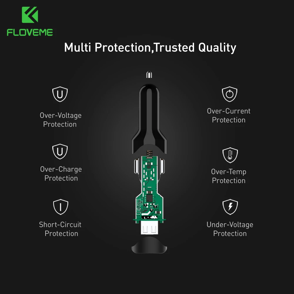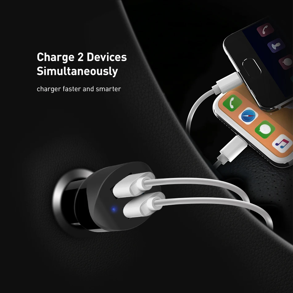 Function:2 Ports High Quality ABS Material Protect Car Phone Charger
