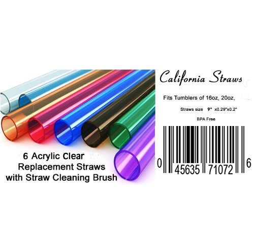-. Feature : 9" inch, set of 6pc Clear Acrylic Straws plus 1 Cleaning Brush / 12 Inch X 3/8 Inch Sports Bottle Straw Washing Brush / The size is: 9"x0.29"x0.2" / BPA Free, Dishwasher Safe / California Straws is a Registered Trademark owned by California Tools LLC