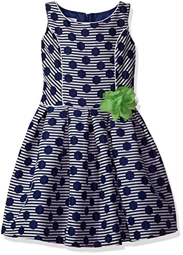 Sleeveless dot and stripe printed princess seam party dress. Bonnie Jean dress, maker of products, has made fashionable, high quality, affordable and age appropriate dresses and playwear sets since 1935Feature