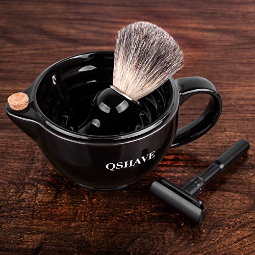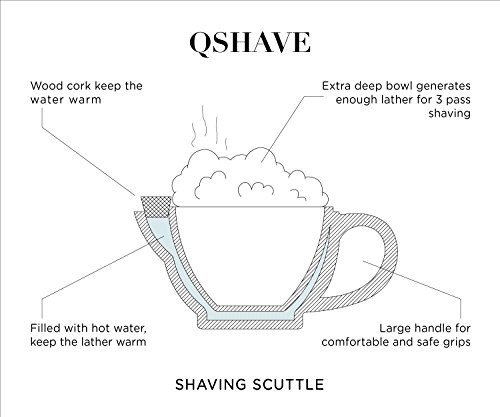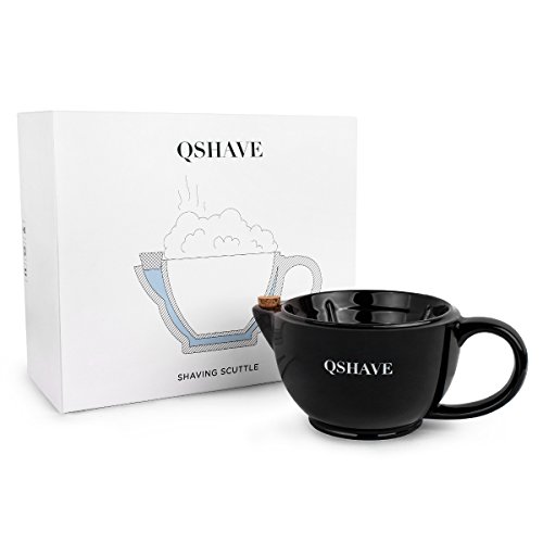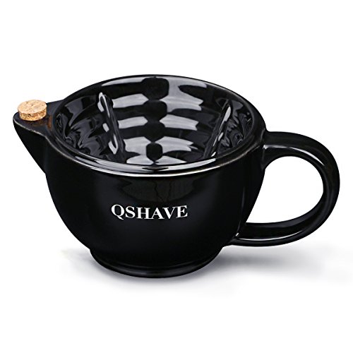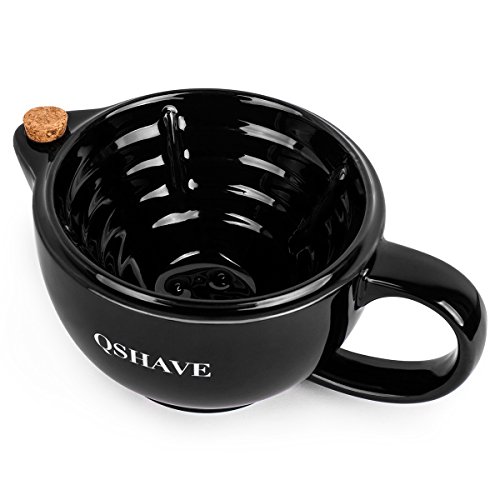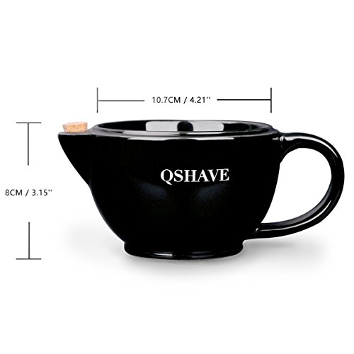 QSHAVE Shaving Scuttle Mug - Keep Lather Always Warm - Large Deep Size Bowl Handmade Pottery Cup (Black)