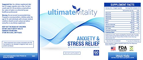 Studio : Ultimate Vitality Publisher : Ultimate Vitality Binding : Health and Beauty Product Description The proprietary formula within the Anti-Anxiety supplement has been effective in reducing anxiety. While prescription drugs may be effective in the reduction of anxiety, they come with side effects that are unpleasant. The natural vitamins, minerals, herbs and amino acids within the supplement provide an effective way to help relieve the symptoms of anxiety. Vitamin B is important in helping to maintain nerve health. 0
