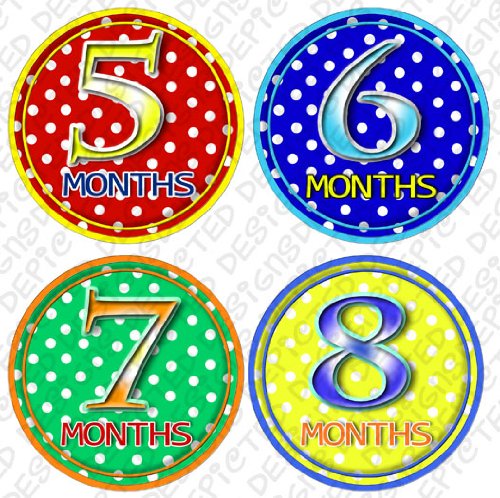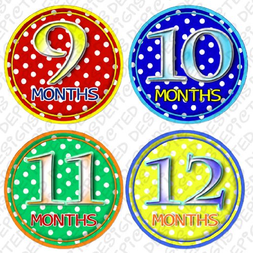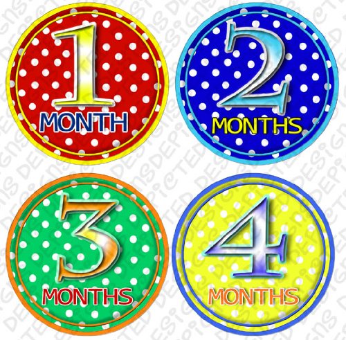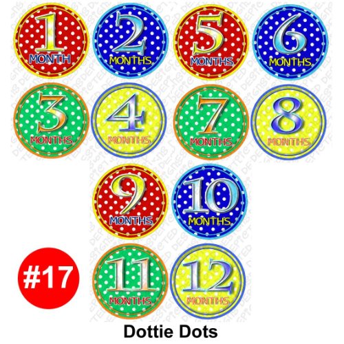 -. Feature : Dottie Dots Polka Dotted onesie stickers great baby shower gift! / Adhesive sticker is super thin, and waterproof. / Flexible and tear proof allowing it to bend with the babies movement. / Baby month stickers are used placed on the baby's shirt, as a photo prop for pictures. / Extra durable adhesive is completely removable.