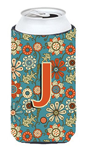 Letter J Flowers Retro Blue Tall Boy Beverage Insulator Hugger CJ2012-JTBC