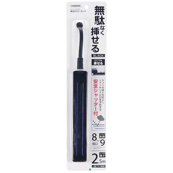 ●ヤザワ H6LS10025BK 差込みフリータップ2 ロングタイプ ブラック 2.5m