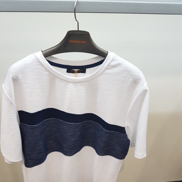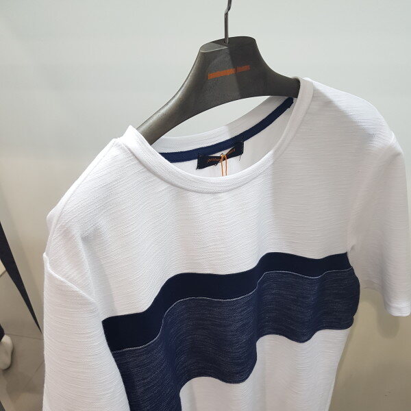 잠뱅이 남 사선 절개 배색 티셔츠입니다.