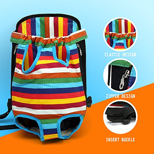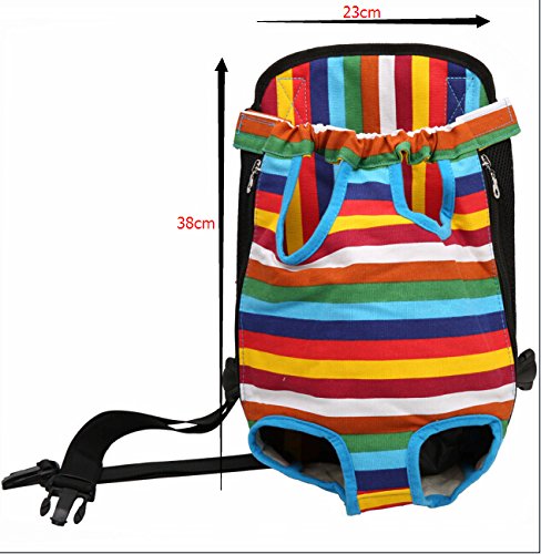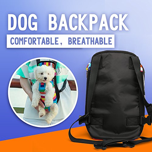 -. Feature : Material:Canvas fabric. High quality Durable and washable,Good breathablity. / 2.Design: Legs and tail outside design,With elastic and velcro on the top,side zippers and breathable mesh on both sides,safe and comfortable for you and your pet. / Free style:Fully Adjustable shoulder straps,it allow front ,back and side carrying of your pet.Very convenience for you,hands-free to enjoy your happy time. / Internal leash attachment to attach to dog's collar,padding with sponge on back. / Multi-color ,size for you to choose.You can take your dog any where and anytime with our pet backpack.