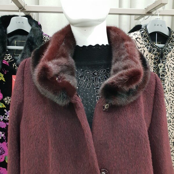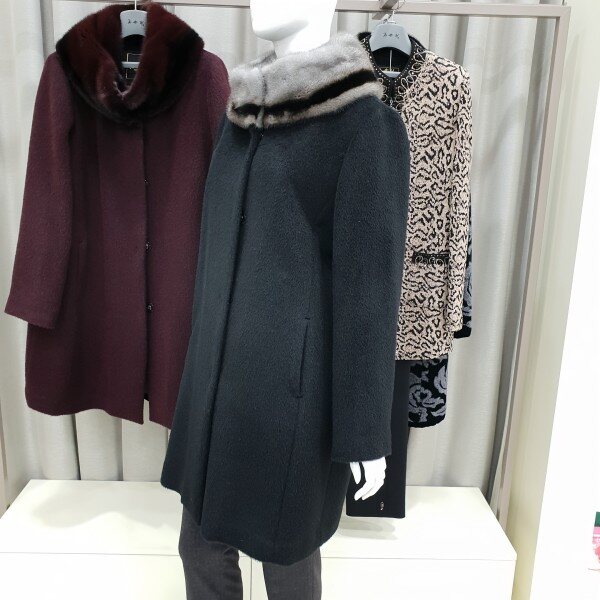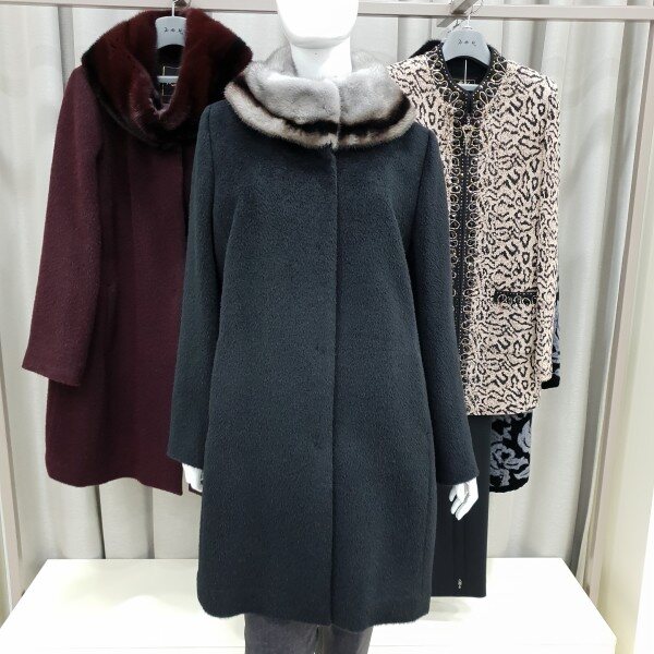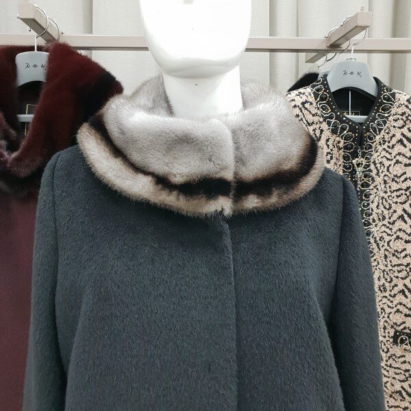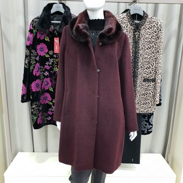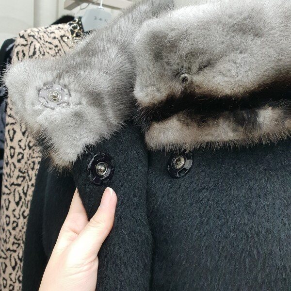 네크라인에 투톤컬러의 풍선한 밍크배색이 고급스럽고 따뜻한 수리알파카코트