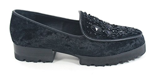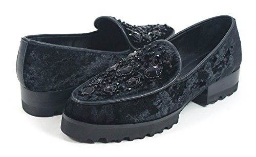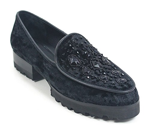 Studio : Donald J Pliner Publisher : Donald J Pliner Binding : Apparel Product Description Chic and comfortable, these loafers by Donald J Pliner will add some sass to your outfit. Women's slip-on loafer. Crushed velvet upper. Beaded embellishments. Rounded toe. Notched vamp. Suede lining. Lightly cushioned, leather footbed. Lugged rubber outsole. 1.5" stacked heel. 0.75" platform. 0