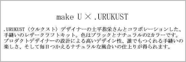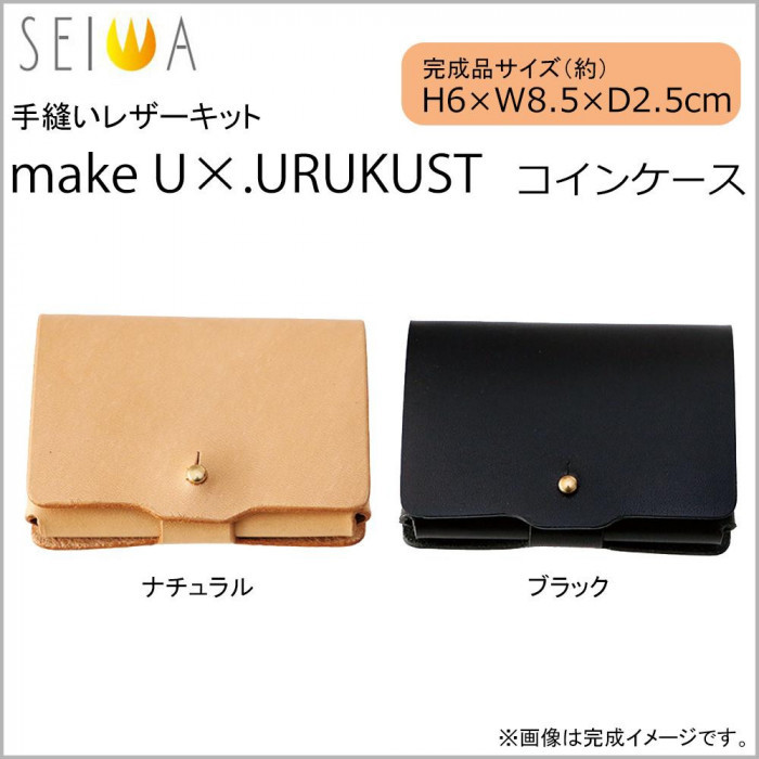 SEIWAのレザーキット「makeU」とレザーブランド「.URUKUST」がコラボレーションした手縫いのレザークラフトキットです。ちょっとした買い物に使いやすい小ぶりでカワイイコインケースが作れます。ポケットにもかさばらずにスッと入ります。 |