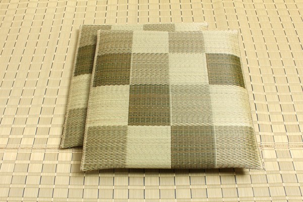 【商品名】純国産/日本製 織込千鳥 い草座布団 『ブロック 2枚組』 グリーン 約55×55cm×2P