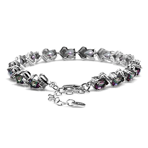 13.12ct. Mystic Fire Topaz White Gold Plated 925 Sterling Silver Balinese 6.75-8.25" Adj. Bracelet